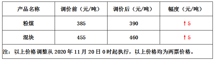 内蒙古恒东美日煤矿11月20日上调部分煤价5元/吨