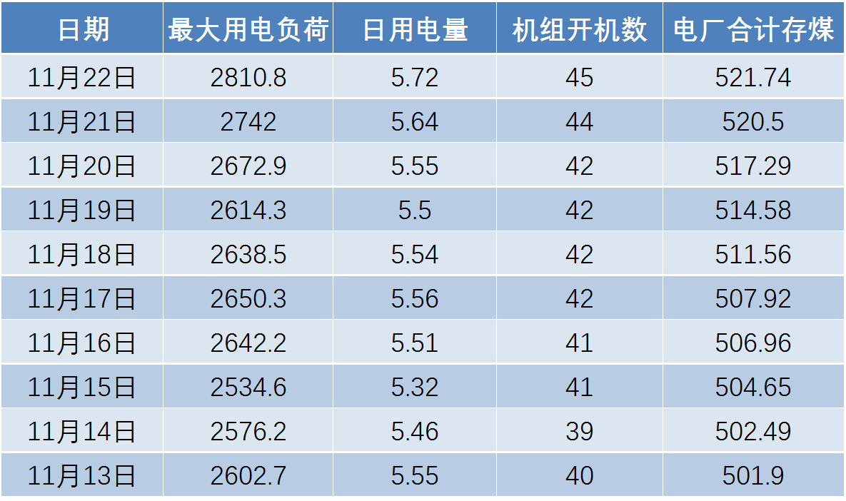 11月13日-11月22日来用电情况