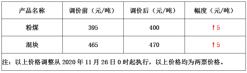 内蒙古恒东美日煤矿11月26日上调部分煤价5元/吨