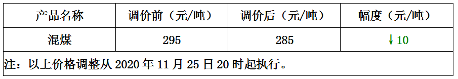 内蒙古葫芦素煤矿11月25日下调混煤价格10元/吨