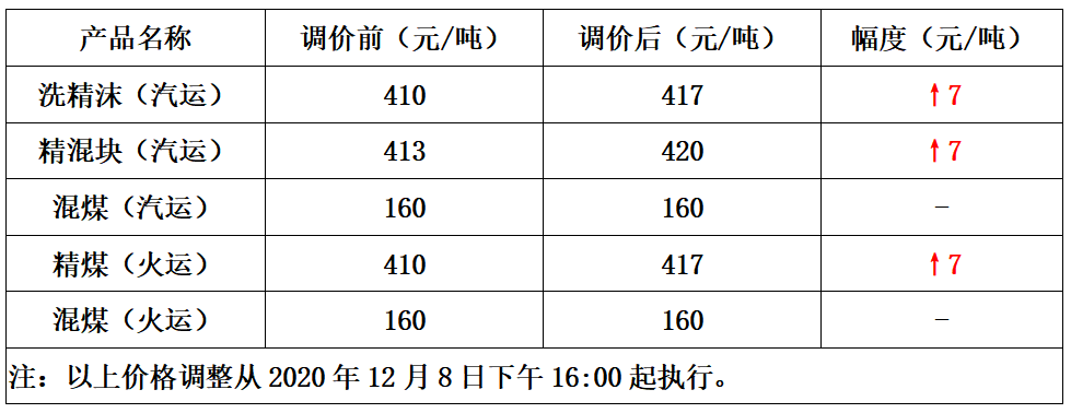 内蒙古新能矿业王家塔煤矿12月8日上调部分煤价7元/吨