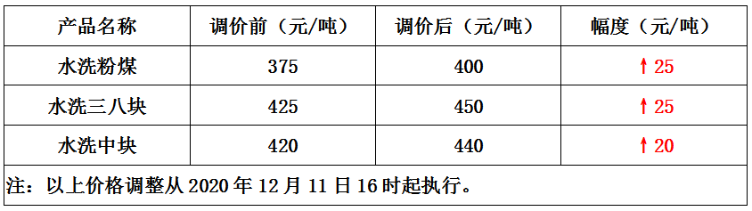 内蒙古高家梁煤矿12月11日上调煤炭价格15元/吨