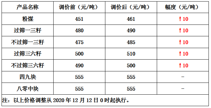 内蒙古丁家梁煤矿12月12日上调部分煤价10元/吨