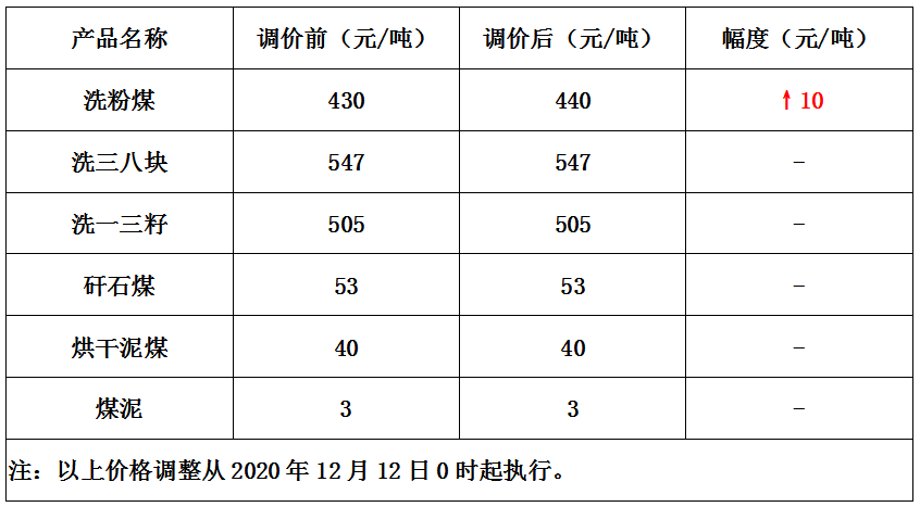 内蒙古益民煤矿12月12日上调洗粉煤价格10元/吨