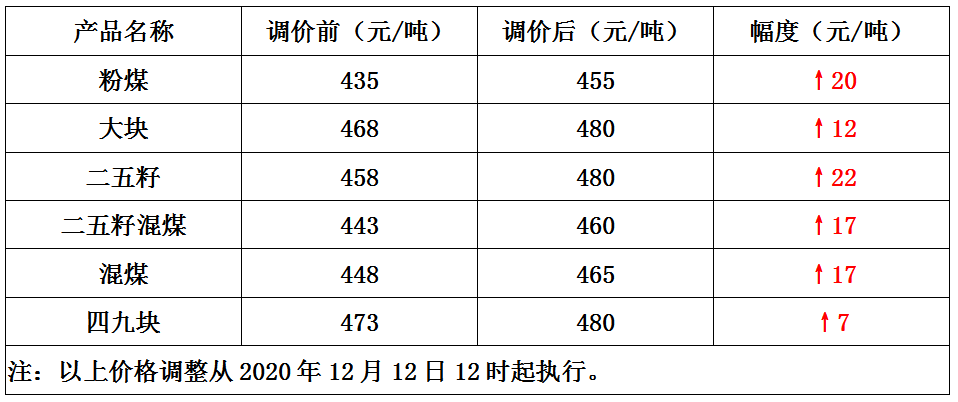 内蒙古淖尔壕煤矿12月12日上调煤价7-22元/吨