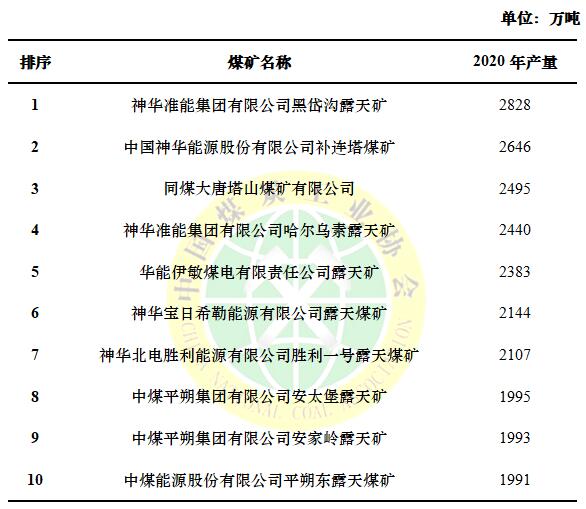 2020年全国十大煤矿产量排名出炉