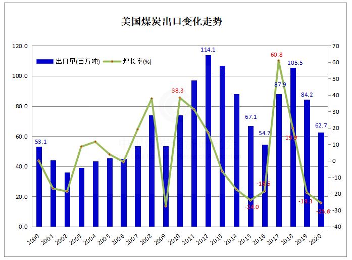 2020年美国煤炭出口6266万吨 同比下降25.6%