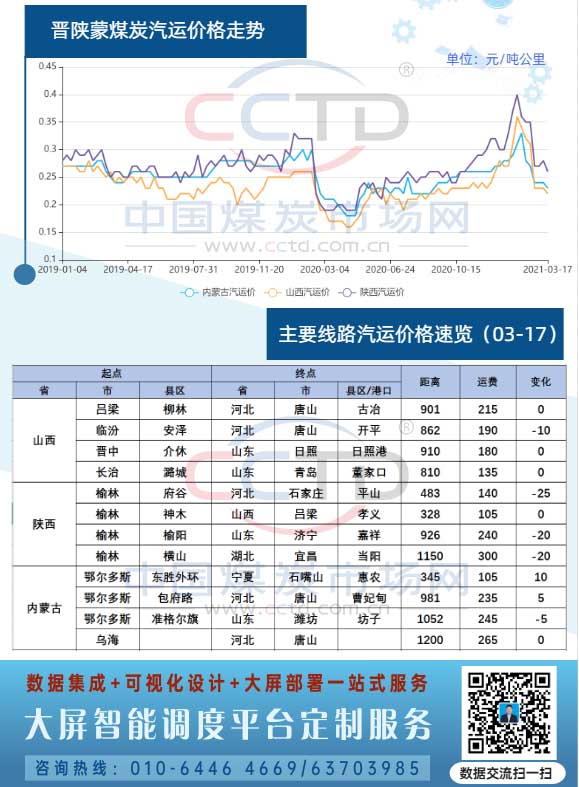 图:晋陕蒙煤炭汽运价格速览(20210317)