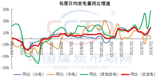新能源发电保持在较高水平。今年以来,在国内宏观经济持续好转背景下,国内总发电量持续增长。从发电结构看,在力争2030年前实现碳达峰、2060年实现碳中和的新目标下,国内风电、核电等新能源快速发展,其同比增速远远高于火电发电量增速。