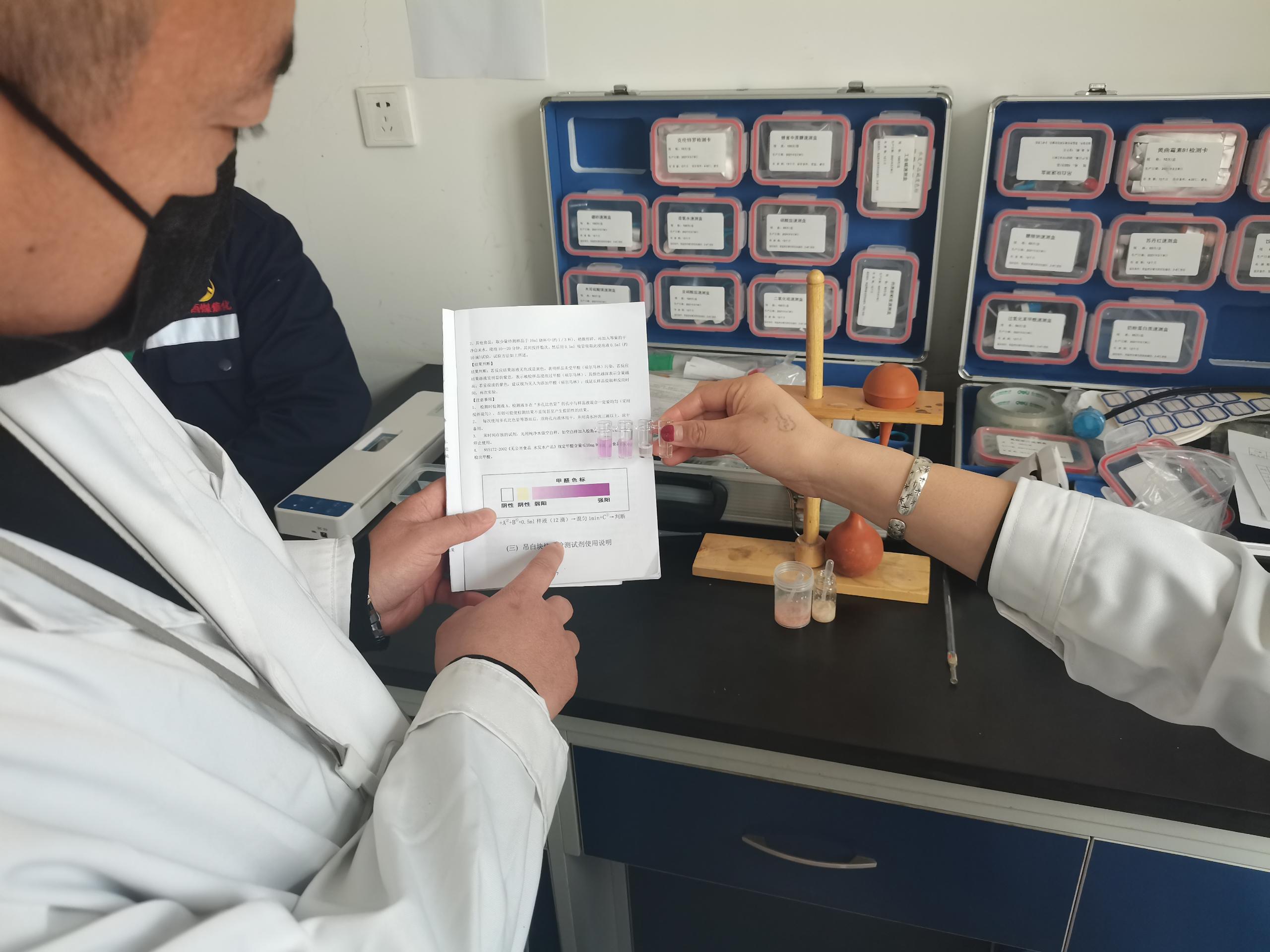标准取样,科学检测。为做好食品检测,稽核部邀请永昌县食药局专业技术人员对采样、分析等环节进行了专门的培训,确保抽样和检测标准化,分析结果正确、及时的反馈给食堂。“现在,食堂的食材检测,我们按照每批主要对肉类进行新鲜度和水分(是否注水)检测,蔬菜类农药残留物、硝酸盐、亚硝酸盐的检测,面类制品硼砂检测,豆类制品吊白块检测,水发类食品甲醛和亚硝酸盐的检测,以及大米石蜡检测,这些项目的检测确保对人体能产生致癌、中毒的物质挡在食品安全的大门之外。”稽核部部长助理牟华说:“为了验证检测结果是否真实有效,我们通过添加甲醛、亚硝酸盐、农药(稀释过)等有害物质进行对比试验,证实我们检测结果真实有效!”稽核部通过强化流程的标准化,层层落实检测责任,从细节做起,确保食品所有流程安全细节管理到位、执行到位。