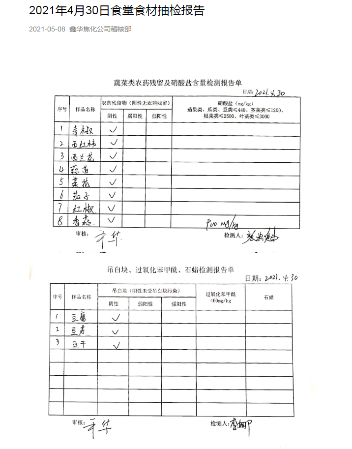 公开数据,接受监督。食品安全工作任重道远,责任重大,稽核部每批次检测结果确认后,都将分析结果发布在企业微信工作群,向广大员工公布检测报告单,并接受监督。“我们将严格落实工作流程,当好食品安全守护者,严管严控食品安全风险,全力守护员工的饮食健康安全,守护‘舌尖上的安全’”牟华说:“为员工提供更安全、更放心、更优质的食材。”