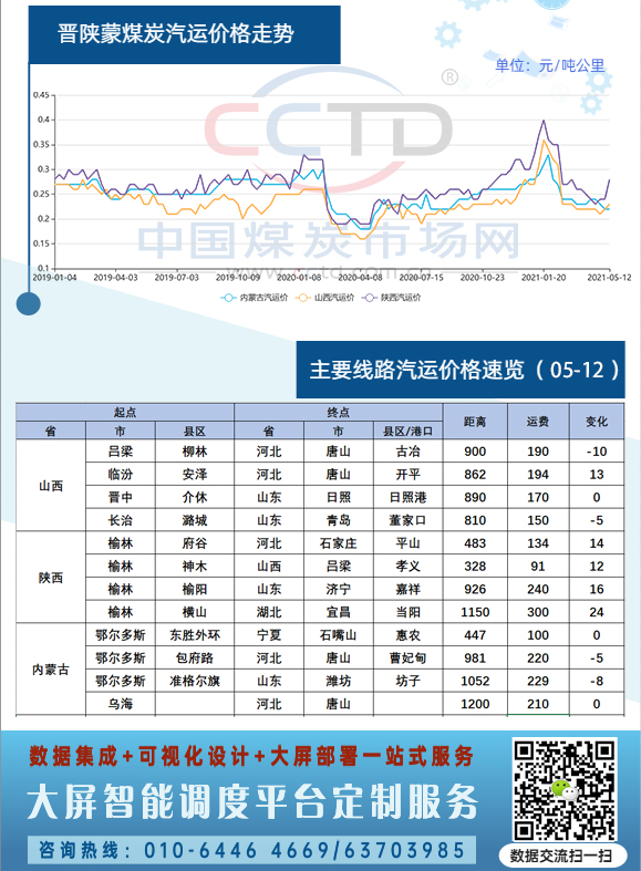 图:晋陕蒙煤炭汽运价格速览(20210512)