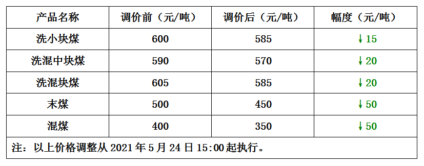 内蒙古红庆梁煤矿5月24日下调煤价15-50元/吨