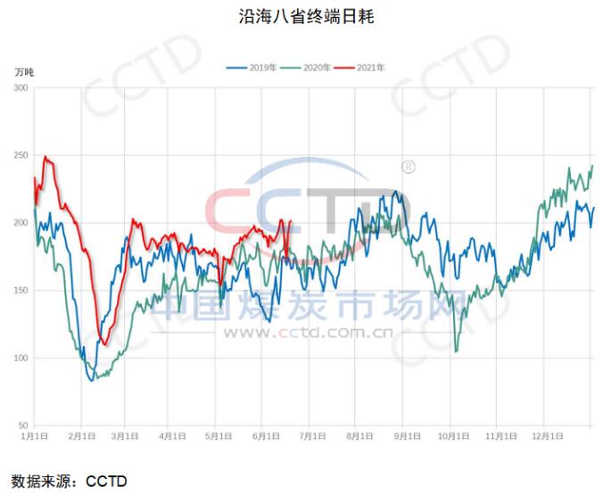 工业品更侧重看需求,2020-2021年在全球大放水的前提下,各国经济都开始步入复苏进程,特别是我们国家控制疫情比较好,经济率先恢复,2021年宏观经济开始从经济复苏步入过热阶段,煤炭需求增长势头强劲。5月至今,终端用户动力煤消费仍然能保持正增长,十分难得。毕竟去年需求端严重被挤压,在5月又集中释放的。能继续同比增长,可想而知需求有多么的强。