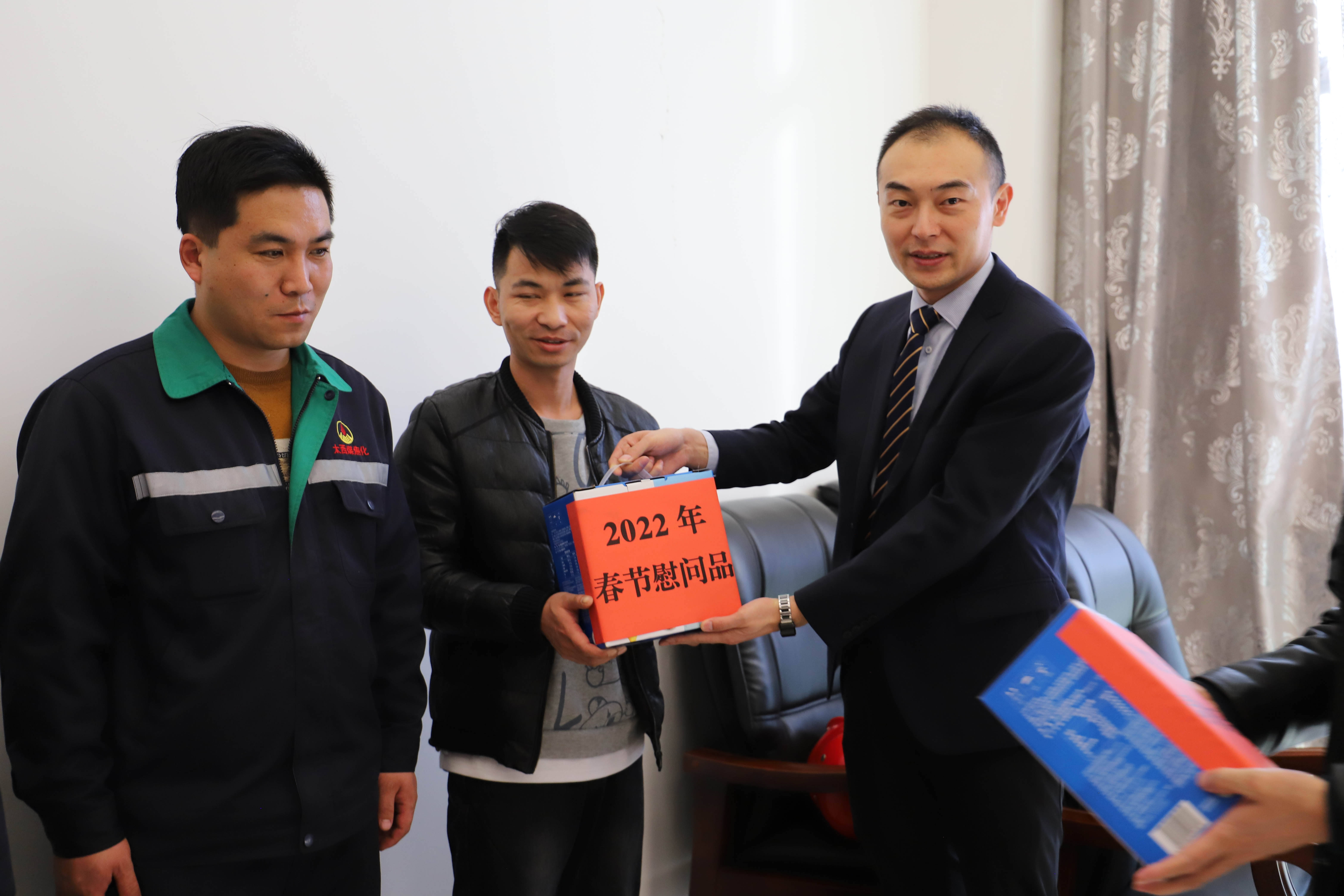 座谈会上,集团公司领导向来自生产一线的5名困难员工和先进代表发放了慰问品,并通过他们向全体员工转达了春节的祝福、关心和爱护。