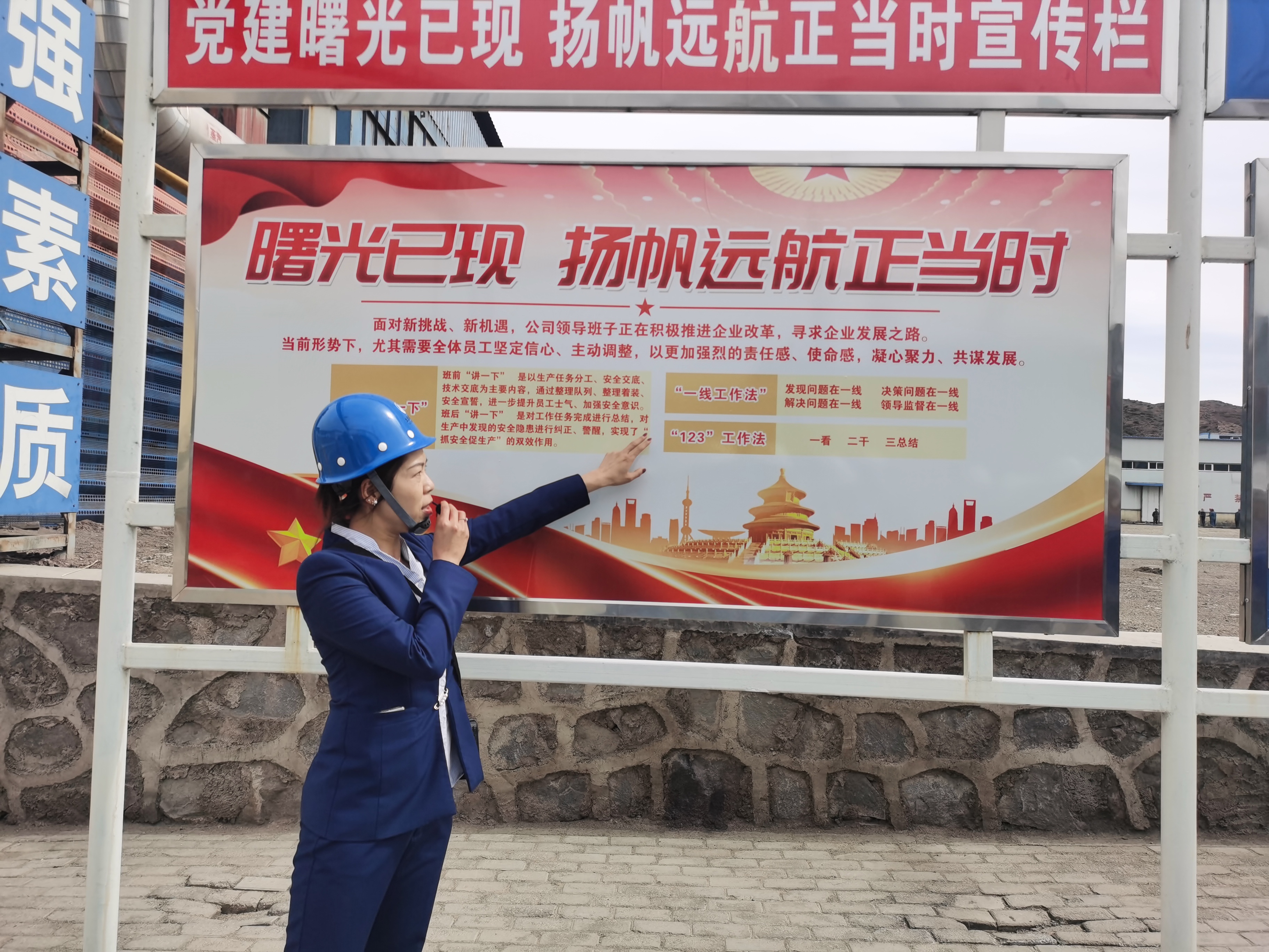 厂门口“曙光已现,扬帆远航正当时”的展板,直观地展现了兴泰煤化公司坚如磐石的改革信念。现场观摩中,大家对兴泰煤化巡检人员三人成列两人成行的队列半军事化管理、整齐划一的安全标线、各类备品备件整齐有序地摆放、产品库房分类码放干净整洁、班前会的科学化管理、食堂管理、目视标识化管理等现场改革管理取得的成效十分感兴趣,点赞交流,纷纷拍照记录。