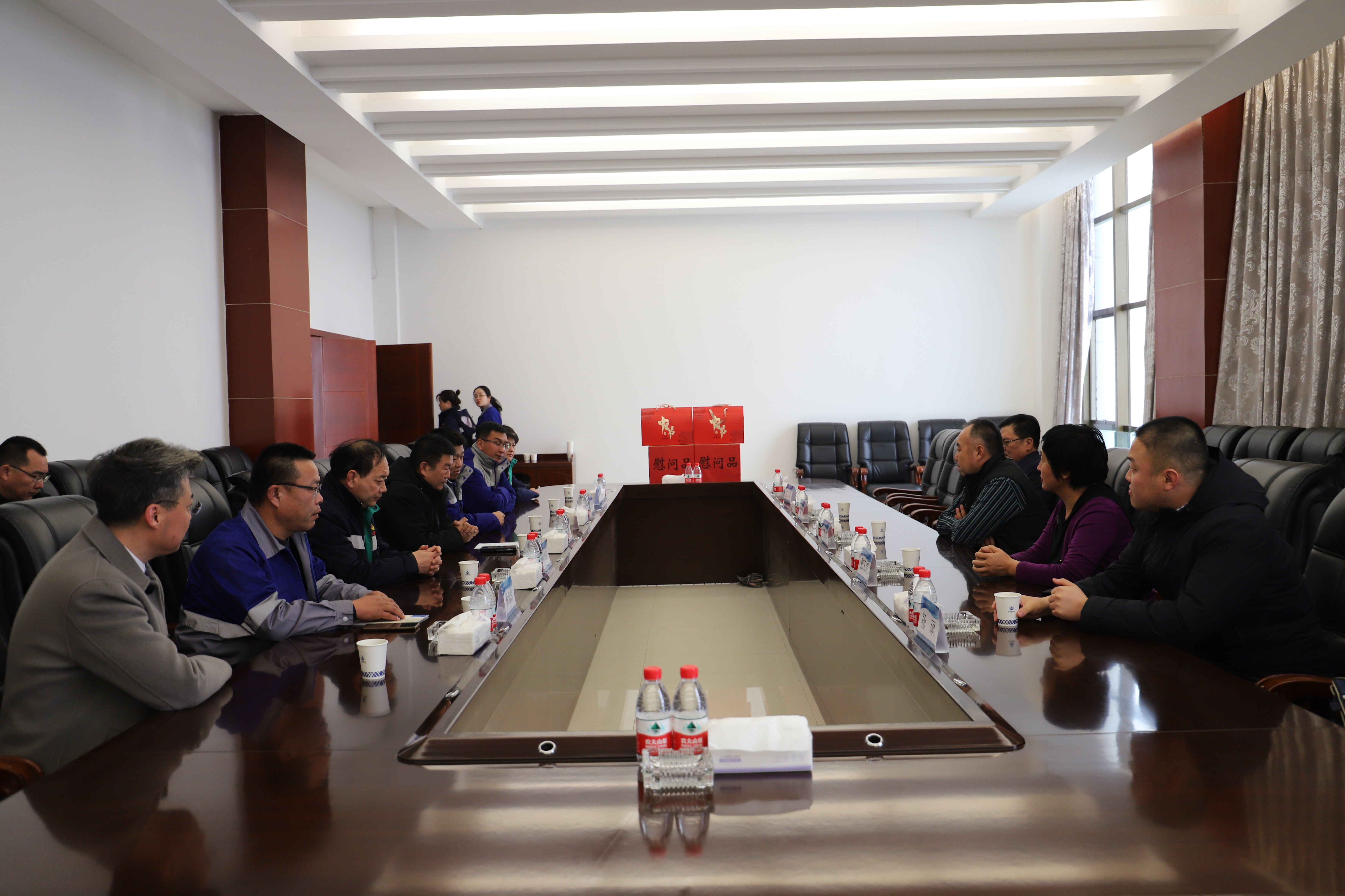 2024年1月23日下午,集团公司董事长王敬华到金昌鑫华焦化公司进行春节前慰问。集团公司党委副书记张玉清、集团总工程师刘鸿旗等陪同,金阿铁路、鑫华焦化在家公司领导参加座谈。会上,集团公司领导向来自生产一线的三名困难员工发放了慰问金。