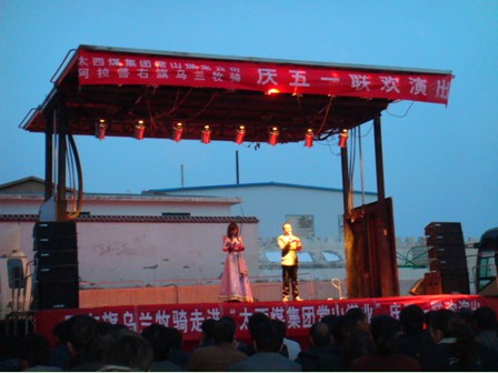 (常山煤业办公室 王财己 崔哈申高娃)4月28日晚,常山煤业有限公司与阿右旗乌兰牧骑歌舞团在办公楼前举行了联谊晚会。