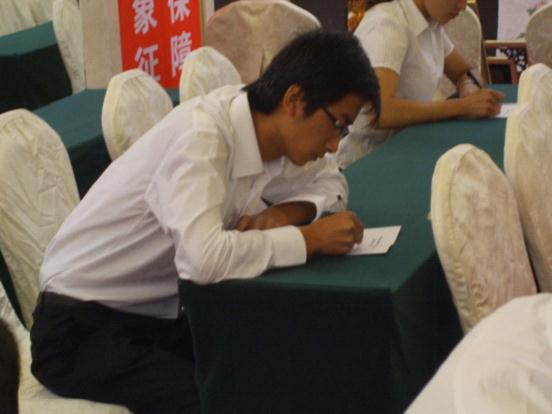 参加“班组长安全知识竞赛”现场,三位选手认真答题