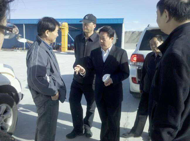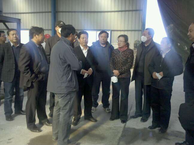 在水选棉厂 ,高司长从进料口、生产车间、晾晒场、干式除尘到包装一一进行了参观,还驱车前往海拔3200多米的初选厂考察。我公司总经理王玉亮全程陪同讲解。就石棉生产技术、尾矿综合利用工艺、基地建设、总体规划、厂房布置、设备制造、产品、市场,环境保护、作业条件的改善、员工身心健康等方面向高司长作了汇报,并特别就水选棉、蝶式除尘作了详细介绍。高司长听了十分满意,在充分肯定我公司工作的基础上,对今后的工作特别是防尘除尘、改善劳动条件作了重要指示。他对我公司目前正在使用的湿法工艺水选石棉和碟式除尘器产生了极大兴趣,并大加赞赏,建议县政府就资源配置、尾矿确权给予支持,并建议在全国石棉行业推而广之。